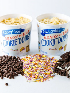 READY TO EAT COOKIE DOUGH! Some of the flavors available include: birthday bash, chocolate chip, monster cookie dough, Reese's, and a plain dough with pick your own toppings. And don't worry PARENTS - for you - we have a coffee espresso chip!